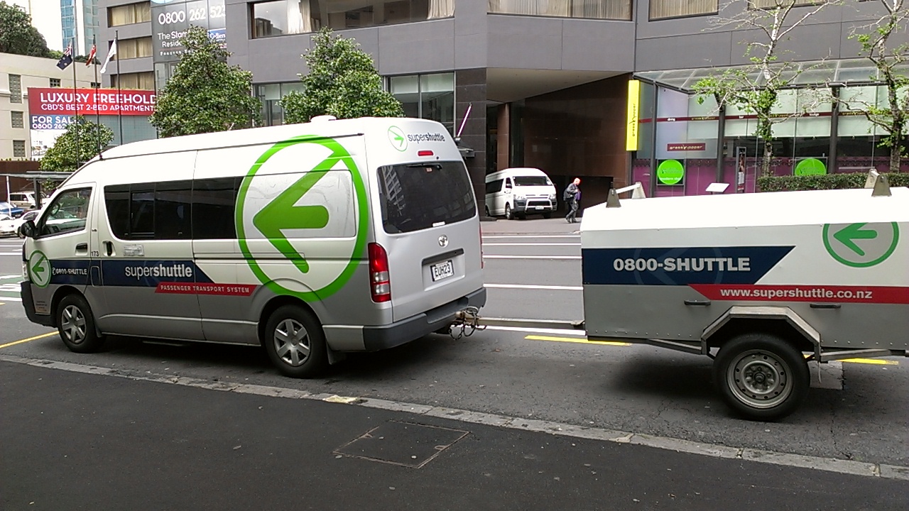 最初は、Auckland空港からSuper Shuttleを利用して、Auckland市内へ移動。