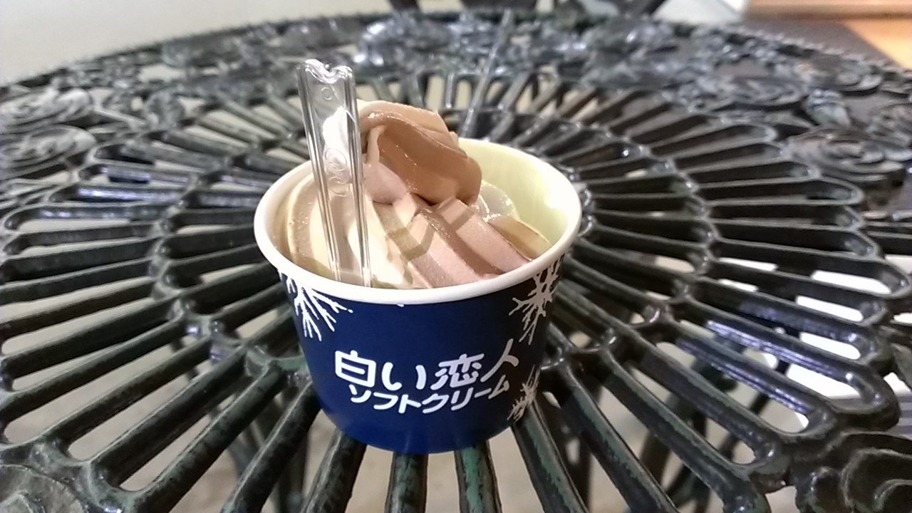 むかわ町の道の駅に売ってる白い恋人のソフトクリーム。