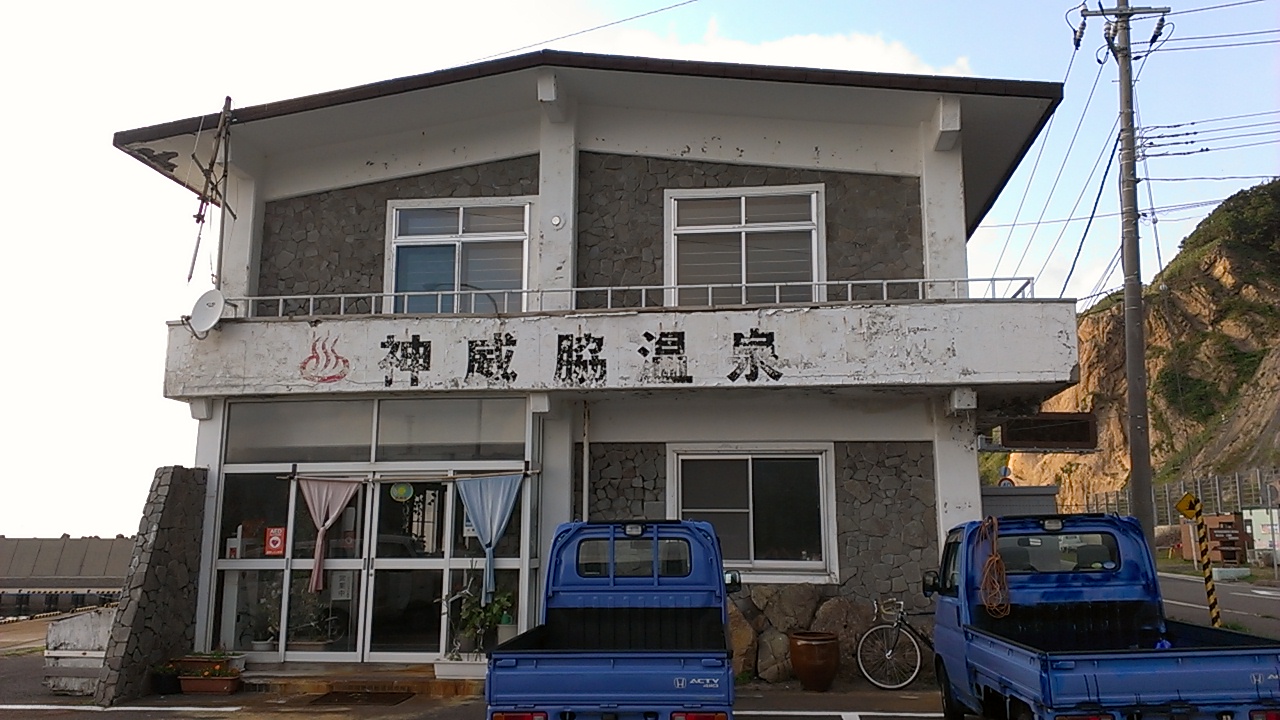 天然温泉の神威脇温泉。車で少し離れた場所に温泉源らしきものを発見。