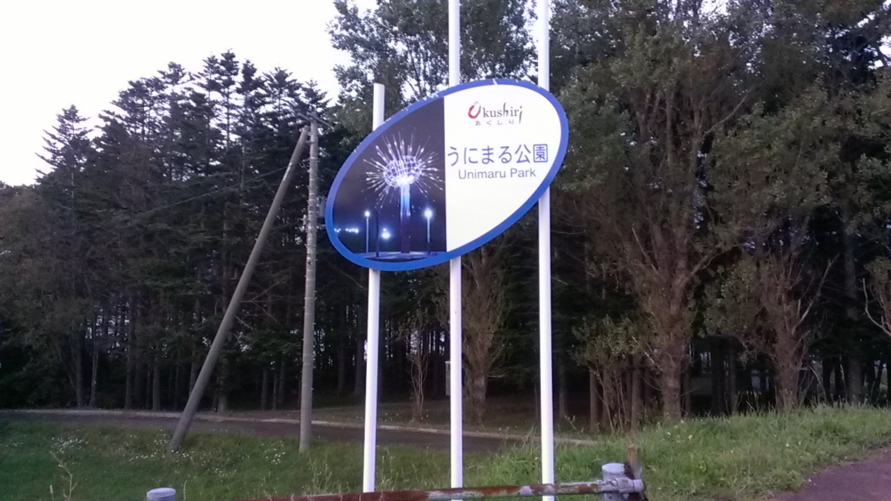 奥尻到着。ゆるキャラのうにまるくんが歓迎してました。